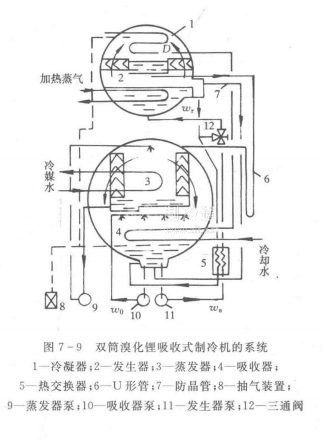 ③在蒸發器液囊中裝設液位控制器,使冷劑水旁通到吸收器中,防止溶液因濃度過高而結晶。