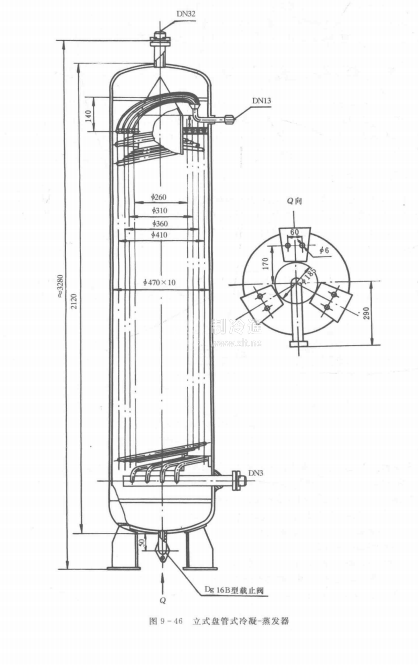氣-液熱交換器通常采用如圖9一45所示的殼盤管式結構。它的外殼由無縫鋼管制成。