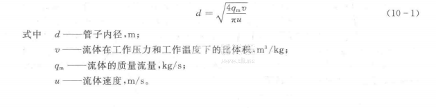 在選定了管內流速后,管子直徑用下式計算: