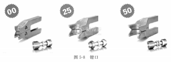 洛克環(huán)連接鉗口(圖5-8)用于復(fù)合環(huán)裝配,鉗口適合用于所有的手動(dòng)工具鉗口。可以簡(jiǎn)單快速的更換,這樣可以只使用一把工具鉗就可以連接不同直徑的管路。