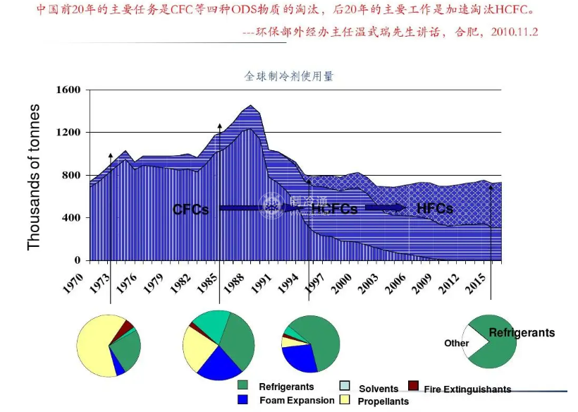 含氟制冷劑與CO?、CH?等其他氣體統(tǒng)稱為溫室氣體。其凈效應(yīng)是使地球表面變暖,隨著大氣中溫室氣體濃度的增加,地球的平均溫度將會上升。CFCs、HCFCs和新一代HFCs制冷劑都被認(rèn)為是溫室氣體。1997年12月《京都議定書》已將替代CFCs和HCFCs的HFCs物質(zhì)列入限控物質(zhì)清單中,要求發(fā)達(dá)國家控制HFCs的排放。為了控制全球氣候變化,又一次對制冷劑提出了新的要求。
