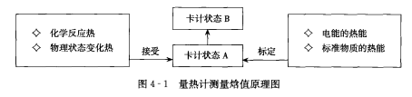 1.量熱計法傳統(tǒng)測量格值方法采用量熱計測量,原理如圖4·1所示,用量熱計接受待測熱量,根據(jù)量熱計的狀態(tài)變化量及對既知電能或標準物質(zhì)熱的標定結(jié)果,確定待測熱量。