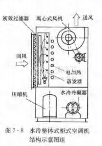 單元柜式空調機組是一個應用十分泛的機型,后面介紹的幾種空調機組從廣義上說都可歸入柜式空調機組:小型的水一空氣式水源熱泵和土壤源熱泵也可歸入柜式空調機組的范疇。本節中單元柜式空調機組僅指應用于民用建筑舒適性空調系統中及工業建筑中用于降溫除濕等用途,直接向室內送風的水冷拒式機組和通過連接風管向室內送風的風冷柜式機組,應用于民用建筑舒適性空調系統的單元柜式空調機組俗稱風管機,單元柜式空調機組按布置形式可分為立式和臥式(吊頂式),按冷卻方式可分為風冷式和水冷式。其中風冷式一般為分體式,而水冷式有整體式和分體式兩種,風管機進出口接送、回風管,也可在回風管上接新風管。通過風管上設置的送風口將冷