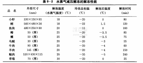 這種裝置對各種凍結水產品的解凍性能見表9-5。