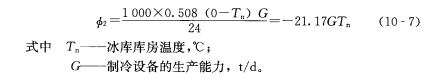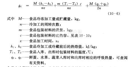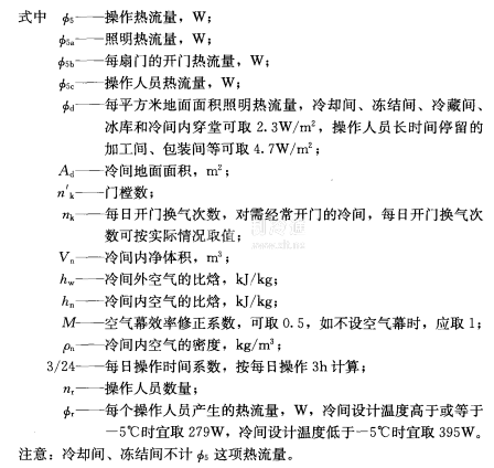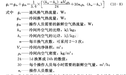 注意:①本熱量只存在于貯存有呼吸的食品的冷間,②有操作人員長期停留的冷間如加工間、包裝間等,應計算操作人員需要新鮮空氣的熱流量,其余冷間可不計算。