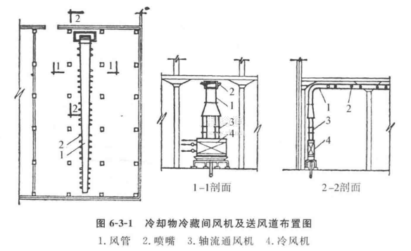冷卻物冷藏間的設(shè)備包括冷風(fēng)機和送風(fēng)道。