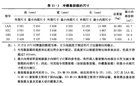 2.冷藏集裝箱的型號冷藏集裝箱的尺寸和性能都已標準化,見表11-1。