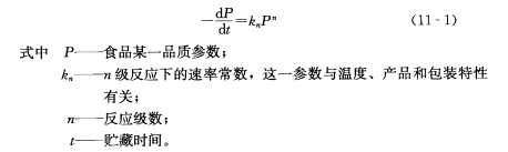 降解速率和程度取決于食品成分、貯藏和流通條件。一觳來說,食品質量損失或貨架期通過一個特征性質量指標表示,如質量指數P.P隨時間變化