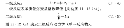 在考慮到反應物復雜情況下的反應動力學,可用中間產物或某一終產物(如脂防氧化中的過氧化物或己醛)作為質量指標。僅有少數情況下零級或一級反應都不適用。例如,圖11-12(d)表示分數級數函數。