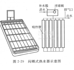 悶 曬式熱水器悶曬式熱水裝置可以傾斜放置,水在集熱器中不發生流動,悶在其中受熱升