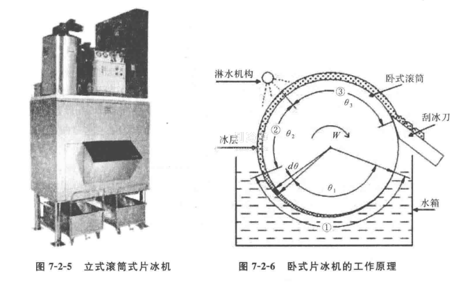 有夾層外壁制冰或內壁制冰的,又有刮刀轉動,圓筒不動和圓筒轉動,刮刀不動之分。其構造是由制冷系統、供水系統和圓筒與刮刀相對運動的傳動機構等組成。