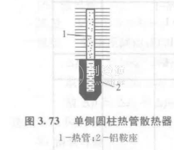 (1)晶體管散熱近年來,大功率電子器件的冷卻上采用了熱管,收到較好效果,如圖3.73所示,對于大功率的晶體管采用圓柱形熱管作為散熱元件。