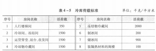 在安全荷載能力下,合理碼垛。冷庫樓面單位面積上平均允許的承載質量為冷庫的安全荷載能力,提高單位容積的裝載量必須以冷庫樓面允許的安全負荷和食品保管質量要求為前提。冷庫荷載標準如表4-5所示: