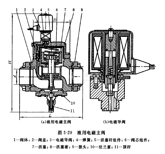 制冷系統(tǒng)的大口徑管路上大多采用主閥、導(dǎo)閥組件來自動(dòng)控制管內(nèi)工質(zhì)流動(dòng)的通斷和流量。圖5-29所示的為液用電磁主閥組件,它由電磁導(dǎo)閥和主閥連接而成,其動(dòng)作原理和導(dǎo)動(dòng)式電磁閥一樣,所不同的是導(dǎo)閥可以是電磁閥,也可以是恒壓閥,主閥和導(dǎo)閥間可以用導(dǎo)管連接,也可以為組裝式。當(dāng)導(dǎo)閥是電磁閥時(shí),主閥起雙位調(diào)節(jié)作用;當(dāng)導(dǎo)閥是恒壓閥時(shí),主閥起比例調(diào)節(jié)作用。