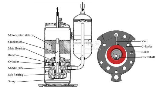 回轉(zhuǎn)式壓縮機(jī)是通過一個(gè)或幾個(gè)部件的旋轉(zhuǎn)運(yùn)動(dòng)來完成壓縮腔內(nèi)部容積變化的容積式壓縮機(jī)。包括滑片式、滾動(dòng)活塞式、螺桿式和渦旋式壓縮機(jī)。回轉(zhuǎn)式制冷壓縮機(jī)是工作容積做旋轉(zhuǎn)運(yùn)動(dòng)的容積式壓縮機(jī)。氣體壓縮和壓力變化是依靠容積變化來實(shí)現(xiàn)的,而容積的變化又是通過壓縮機(jī)的一個(gè)或幾個(gè)轉(zhuǎn)子在氣缸里做旋轉(zhuǎn)運(yùn)動(dòng)來達(dá)到目的的,與往復(fù)壓縮機(jī)不同的是,其容積在周期性地?cái)U(kuò)大和縮小的同時(shí),空間位置也在不停地變化。只要在氣缸上合理地配置吸氣和排氣孔口,就可以實(shí)現(xiàn)吸氣、壓縮和排氣等基本工作過程。