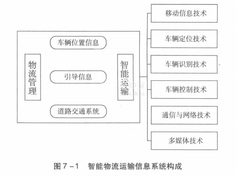 目前,我們對TS的研究和利用主要集中在:提供交通信息服務、提供優化的道路交通管理服務、提供車輛安全控制服務、提供優化的商用車管理服務、提供優化的公交管理服務、提供緊急事件管理服務、提供電子收付費服務、提供交通援助服務、提供災難解決方案服務、提供交通數據服務。主要用于物流運輸優化這一功能上。TS的核心就是應用現代通信、信息、控制、電子等技術,如GPS、GIS、射頻技術、網絡系統,建立一個高效的物流運輸系統。③智能物流運輸信息系統構成如圖7-1所示。