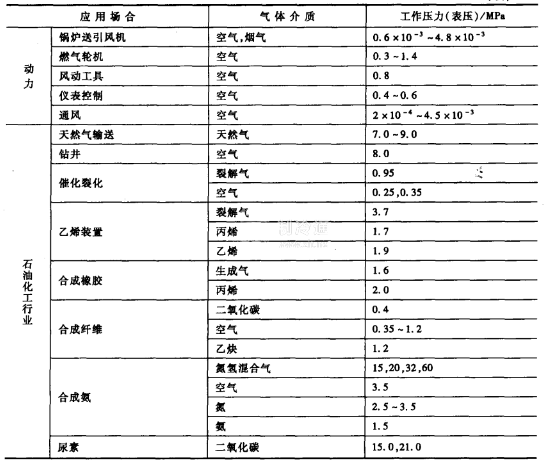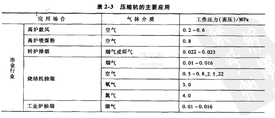 壓縮機(jī)在國(guó)民經(jīng)濟(jì)各部門中占有重要的地位,其在部分行業(yè)的主要應(yīng)用如表2-3所示,