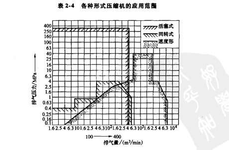 各種形式壓縮機(jī)的應(yīng)用范圍如表2-4所示。