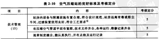 三、空氣壓縮站的完好標準及考核定分如表2-10所示。