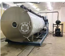 凍功能的凍干機(jī),預(yù)凍可在凍干機(jī)內(nèi)進(jìn)行。一般生產(chǎn)型固態(tài)食品凍干機(jī)是無(wú)預(yù)凍功能的,在低溫冷庫(kù)(或凍結(jié)隧道)中用吹風(fēng)強(qiáng)制冷卻凍結(jié)。這是因?yàn)橐环矫胬鋷?kù)的造價(jià)不到凍干機(jī)的十分之一,這樣凍干機(jī)只進(jìn)行制品的干燥可以充分地發(fā)揮凍干機(jī)的生產(chǎn)能力;另一方面現(xiàn)代固態(tài)食品凍干機(jī)中的制品是懸掛于兩輻射加熱板之間的,若在干燥箱內(nèi)預(yù)凍,就需在箱內(nèi)增加制冷系統(tǒng)和冷風(fēng)機(jī),這是不合算的。預(yù)凍冷庫(kù)一般庫(kù)溫為一30~一40℃。盤(pán)裝制品用吊籠(或推車)懸吊于吊軌(或支承于地軌)上,用冷風(fēng)機(jī)強(qiáng)制冷卻。冷庫(kù)的吊軌可直通干燥箱內(nèi),這樣做是必須的,否則就不能在很短時(shí)間內(nèi)裝完整批制品,裝料時(shí)間長(zhǎng)了就會(huì)造成被凍結(jié)的制品溶化。