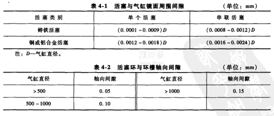 ①修理或更換活塞或活塞環(huán),調(diào)整好配合間隙,如表4-1及表4-2所示。