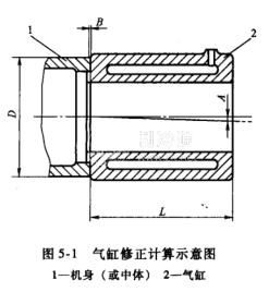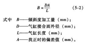 ②當傾斜度超過允許值時,可采用研刮氣缸與機身的接合面來調(diào)整。若超差過大,應用加工方法來調(diào)整。其加工量可按下式計算,并參看圖5-1。