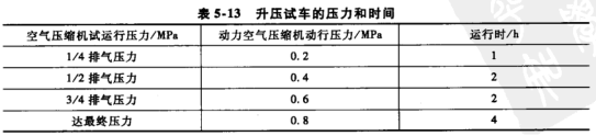 2.升壓試車動力空氣壓縮機升壓試車的壓力和時間如表5-13所示。