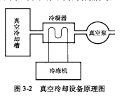 在正常的101.3kPa壓力下,水在100℃沸騰,當壓力為0.66kPa時,水在1℃就沸騰。在沸騰過程中,要吸收汽化潛熱,這個相變熱正好用于水果、蔬菜的真空冷卻。為了利用這個原理組裝設備,必須設置冷卻食品的真空槽和可以抽掉真空槽內空氣的裝置。圖32為真空冷卻設備原理圖。