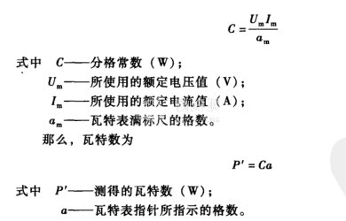 4)瓦特表的讀數。讀數時,應根據表上指針指示的格數與該表給出的分格常數的乘積,從而得到該表測得的瓦特數。若沒有給出分格常數,可按下式算出分格常數