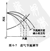 在一級吸氣管上裝一個節流閥門,靠改變閥門的開度來改變吸氣管的阻力,從而改變壓縮機的吸氣壓力,使氣量發生變化。進氣節流對壓縮機性能的影響如圖6-7所示。