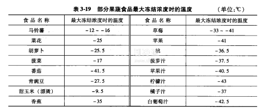 1.凍結降溫速度和凍結終溫對冷凍干燥速度有很大影響。快速凍結可以獲得均勻致密的干制品,對食品分子的細胞膜和蛋白質破壞小。復水后食品彈性好、持水力強,但干燥過程中水蒸氣有較大的擴散阻力。目前,常選擇凍結終溫比食品最大凍結濃度時的溫度低5~10℃。表3-19為部分果蔬食品最大凍結濃度時的溫度。
