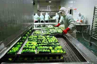 蔬菜在凍結前都要進行必要的處理,處理的內容和工序根據蔬菜的種類和產品要求等不同而異。清洗后的蔬菜除去皮、種子等不可食部分,再依制品的不同要求切分成各種規格形狀。在預處理過程中原料不能直接與銅或鐵的容器直接接觸,否則產品易變色、變味,所以加工過程中應使用不銹鋼器具。