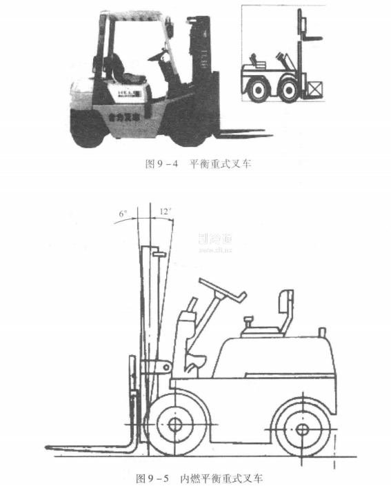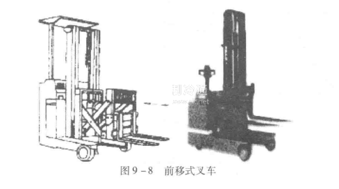 冷庫中所用的叉車都是以蓄電池為動力,沒有廢氣排出,而且輕便靈活,維護管理簡單,容易操作。叉車屬于機動車輛,必須由經(jīng)過專門培訓(xùn)的人員持證操作。其維護應(yīng)也由專人進行,每年要進行一次總檢,總檢不合格的車輛不準(zhǔn)使用。叉車的型式很多,主要有平衡重式叉車、內(nèi)燃平衡重式叉車、蓄電池平衡重式叉車、高位揀選叉車、前移式叉車、高貨位揀選式義車等,分別見圖9-4~圖9-8。