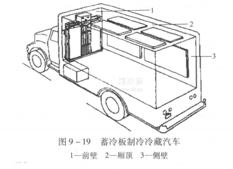 如圖9-19所示,蓄冷板中裝有預先凍結成固體的低溫共晶溶液,外界傳入車廂的熱量被蓄冷板中的共晶溶液吸收,共晶溶液由固態轉變為液態。只要蓄冷板的塊數選擇合理,就能保證運輸途中車廂內維持規定的溫度。