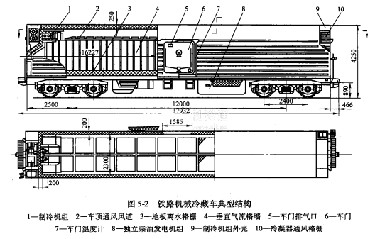 械冷藏車還設有溫度自動檢測、記錄和安全報警裝置,鐵路機械冷藏車典型結構見圖5-2。