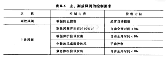 放風閥的作用是防止壓縮機喘振、逆流的發生,因此,要求放風閥具有快速反應的能力及可靠的性能。主、副放風閥的控制要求如表8-6所示。