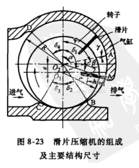滑片壓縮機(jī)的組成及主要結(jié)構(gòu)尺寸如圖8-23所示。
