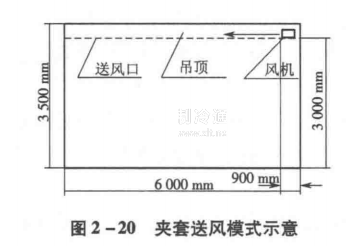 核心提示:夾套送風模式由天花吊頂及冷風機組成,如圖2-20所示。在這種模式中,冷風先由冷風機吹到夾套中,再通過吊頂上的送風口(孔徑為5mm)進入庫內,從而起到送風均勻、消除死區(qū)的作用。