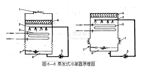 風(fēng)冷式冷凝器的冷卻介質(zhì)為空氣,用空氣冷卻冷凝器毋需成本而又取之不盡,具有很多優(yōu)點(diǎn)。但也存在著傳熱系數(shù)低、冷凝器的體積和重量大、受環(huán)境溫度影響大等缺點(diǎn),當(dāng)夏季環(huán)境溫度很高時,其冷凝溫度可達(dá)50℃以上,造成制冷系統(tǒng)運(yùn)行效果差,能耗高。因此各國都在研究和開發(fā)新型的冷凝器。蒸發(fā)式冷凝器是研究的一個熱門課題,蒸發(fā)式冷凝器就是當(dāng)外界空氣溫度較高或冷凝器負(fù)荷過大時,借噴淋循環(huán)水把冷凝器表面濕潤,并送入空氣。這樣風(fēng)冷冷凝器變成了蒸發(fā)式冷凝器。蒸發(fā)式冷凝器表面為薄層水膜覆蓋,外層流動著冷卻空氣,因此它包括了傳質(zhì)換熱和對流換熱兩部分,比單一的空氣對流換熱效果要好得多??照{(diào)器在夏季運(yùn)行時都會產(chǎn)生凝結(jié)水,這部分凝結(jié)水也可用作噴淋水,減少了凝結(jié)水的排放問題。蒸發(fā)式冷凝器噴水方式的確定要結(jié)合窗式空調(diào)器的特點(diǎn),噴水方式應(yīng)盡可能不破壞空調(diào)器本身結(jié)構(gòu)和有利于安裝。據(jù)試驗(yàn)測量,窗式空調(diào)器采用蒸發(fā)式冷凝器比采用風(fēng)冷冷凝器,其能效比可提高50%70%,具有明顯的節(jié)能效果。