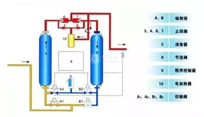 4)吸收法。在制藥工業、食品工業中,為了去除壓縮空氣中由某些有機物蒸氣引起的氣味,采用活性炭等吸附劑吸附的方法稱吸收法。