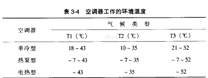 這3種類型空調(diào)器的工作環(huán)境溫度如表3-4所示。