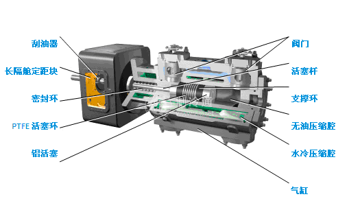 (1)一級排氣溫度高機組運行過程中,各級排氣壓力分別為0.25MPa、0.59MPa、0.9MPa,各級排氣溫度分別為170~190℃、125℃、95℃。一級氣缸排氣溫度超過了相關規范要求,機組氣缸潤滑狀況惡化,氣閥積炭嚴重,氣閥彈簧、閥片、密封面等極易損壞,氣閥的清洗周期在500h以下,活塞環、支撐環(采用填充聚四氟乙烯材質)磨損嚴重,使用壽命短,檢修頻繁。分析其原因,主要有以下方面: