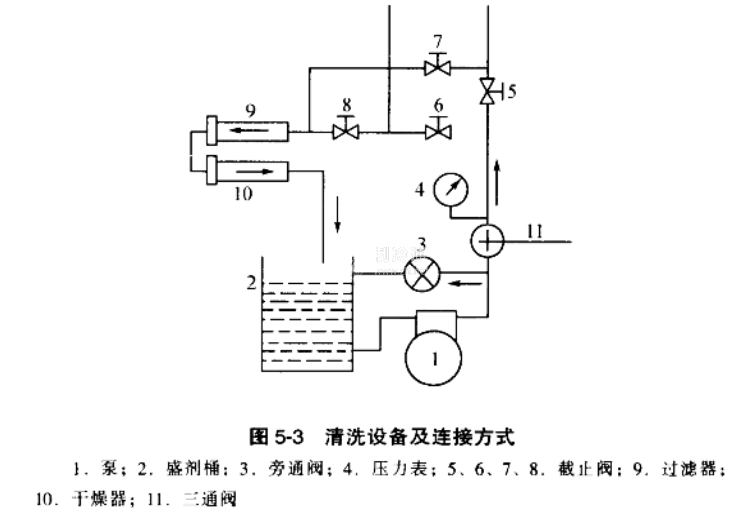 清洗設(shè)備由薄膜泵、過(guò)濾器、干燥器及各種閥門組成,如圖5-3所示。