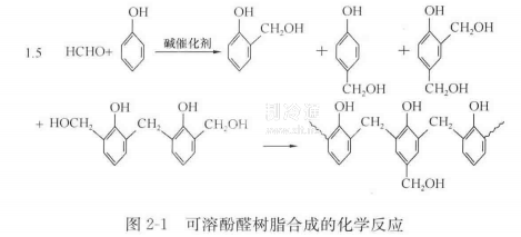 在堿性催化條件下,可溶酚醛樹脂合成的化學反應歷程如圖2-1所示。