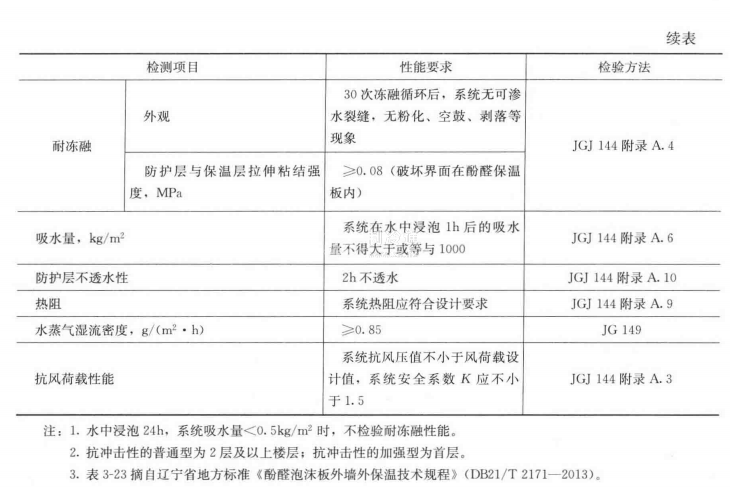 PF保溫板外墻外保溫系統(tǒng)性能,見表3-23。