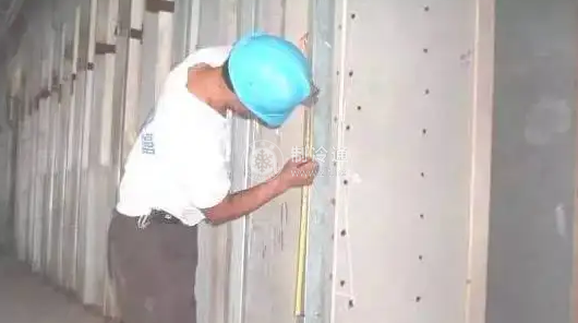 用脹管螺絲將板材錨固于墻體上(墻面不平時,應用水泥砂漿找平),錨固墻體有效深度≥50mm。樓層高度在40m以下時,錨固中距為500mm;樓層高度在40m以上時,板材與墻體固定采用粘、釘結合,粘貼面積應大于40%,錨固中距為400mm。