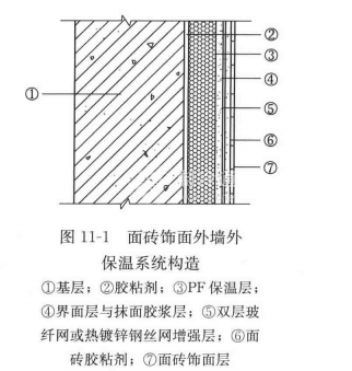 面磚飾面外墻外保溫系統構造,如圖11-1所示。
