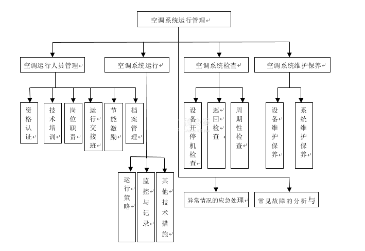 中央空調(diào)系統(tǒng)的運行管理是物業(yè)設(shè)施管理的一個重要組成部分,既有與其他專業(yè)技術(shù)門類管理相同的共性內(nèi)容,也有自己獨特的地方。因此,除了有共性的管理制度可以借用,如設(shè)備管理制度、故障及事故處理制度等以外,還必須在物業(yè)設(shè)施管理的總原則基礎(chǔ)上,結(jié)合中央空調(diào)系統(tǒng)運行管理的實際,因地制宜地制訂出一套合理的、專業(yè)性的規(guī)章制度,為中央空調(diào)系統(tǒng)的運行管理建立起正常的工作秩序。