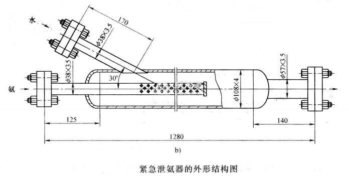 在氨制冷裝置中,是利用水可以大量吸收氨的特性,設置緊急泄氨器,把容器內的氨液稀釋為氨水后排入下水道的。
