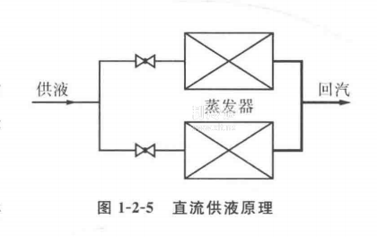 直流供液就是將高壓制冷劑液體經節流閥節流后,直接供到冷間蒸發器內(見圖1-2-5)。它是以冷凝壓力和蒸發壓力之差為動力。